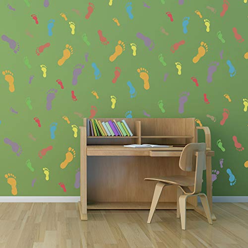 NAKLEO 5 pezzi riutilizzabili stencil di plastica - Piedi Impronte Dita - 34x34cm a 9x9cm - Decorazioni Stanza Bambini Pittura Motivi - Mobili Parete fai-da-te Artigianato