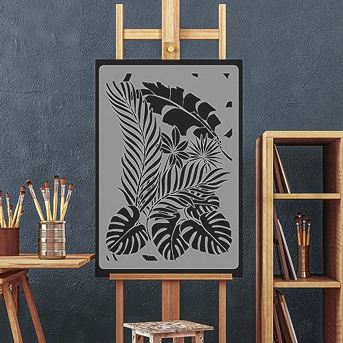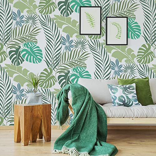 NAKLEO Stencil Riutilizzabile di Plastica Murale - 59x95cm - Palma Tropicale Esotica - Grande Modello Carta da Parati Ripetitivo Pittura Tappezzeria Senza Cucitura Fai-da-te