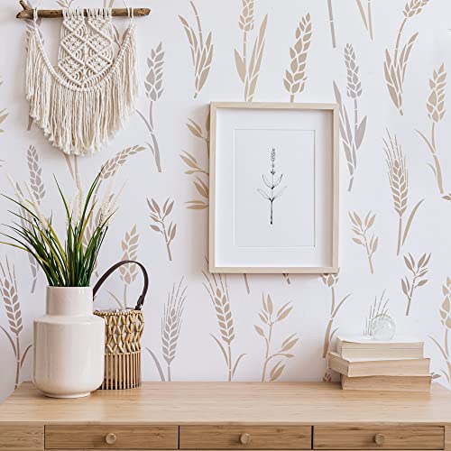 NAKLEO Stencil Riutilizzabile Plastica Parete - 43x64cm - Grano Spighe Frumento - Grande Carta da Parati Motivo Pittura Fai Da Te Artigianato Stampino - Tessuto Mobili Legno Tela