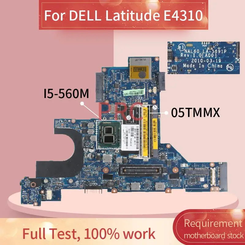 NAL60 LA-5691P For DELL Latitude E4310 I5-520M I5-540M I5-560M Laptop motherboard CN-05TMMX 05TMMX DDR3 Notebook Mainboard