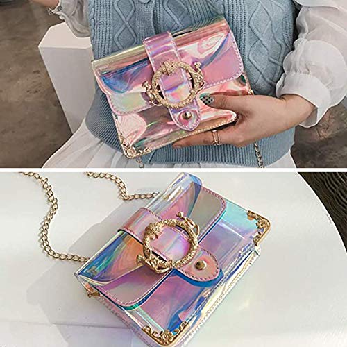 NALCY Borsa a Tracolla Olografica, Mini Borsa Messenger Trasparente, Borsa da Spiaggia Estiva Borsa a Zainetto Laser Iridescente Traslucide con Catena per Donna