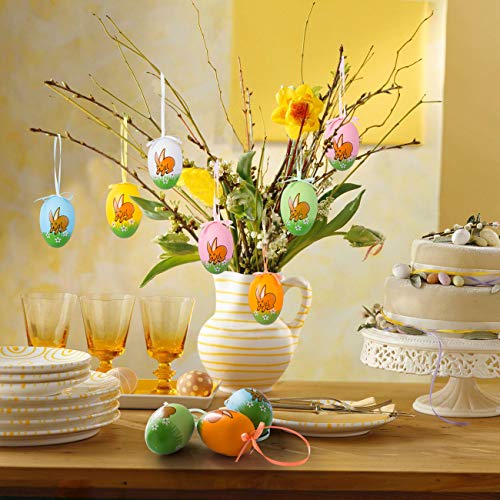 Naler Set di 12 Uova Pasquali Colorate Finte Uova da Appendere Pasquali Uova con Disegno di Coniglio Decorazioni di Festa Pasqua, 4X6CM