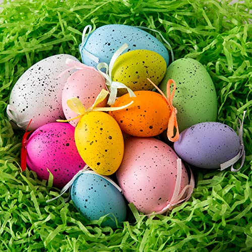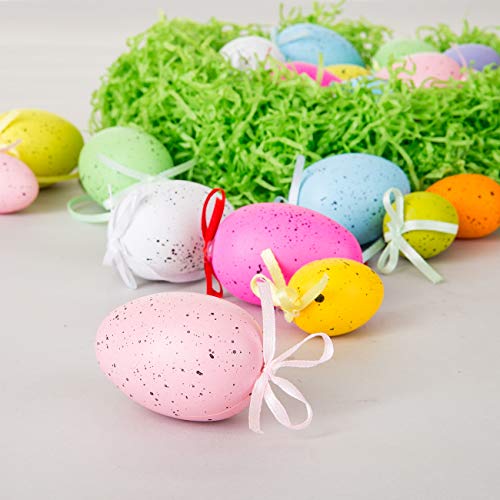Naler Set di 24 Uova Pasquali Colorate Finte Uova con Macchie da Appendere Uova Decorativa di Festa Pasqua, 12 Grandi + 12 Piccoli
