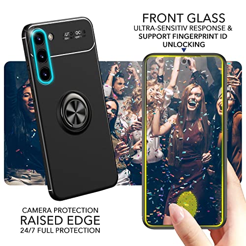 NALIA Set [3-in-1] Compatibile con Samsung Galaxy S23 Plus Custodia [1x Ring Case & 2x Vetro di Protezione Del Display Anello Girevole 360-Gradi & Supporto per Auto, Nero Opaco, Colore:Nero