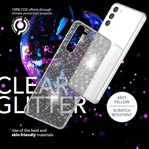 NALIA Set [5-in-1] Compatibile con Samsung Galaxy S23 Custodia [1x Glitterata Case & 2x Vetro di Protezione Del Display & 2x Protezione Della Telecamera] Trasparente Anti-Giallo, Colore:Trasparente