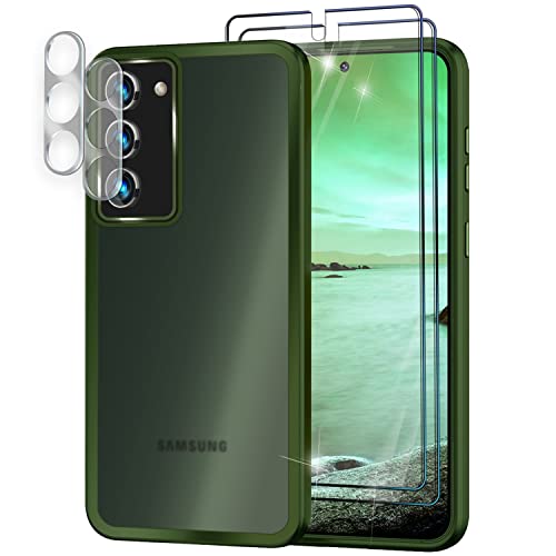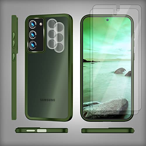 NALIA Set [5-in-1] compatible con Samsung Galaxy S23 Custodia [1x Custodia Protettiva Ibrida Opaca & 2x Protezione Schermo & 2x Vetro Di Protezione Camera] Case Traslucido Antiurto, Colore:Verde