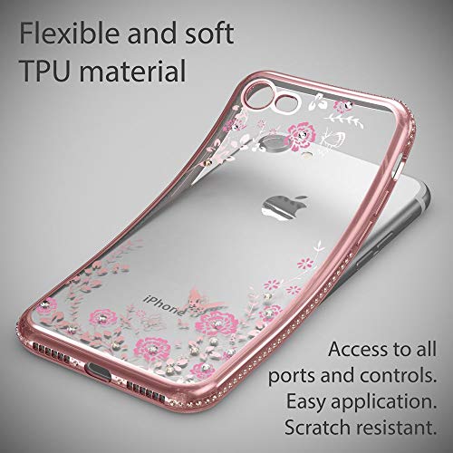NALIA Brillantini Custodia compatibile con iPhone SE 2020/8 / 7, Glitter Copertura Protezione Silicone Sottile Telefono Cellulare Slim Fiori Cover Case Protettiva Bumper, Colore:Rosa