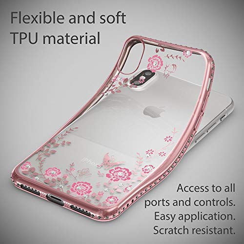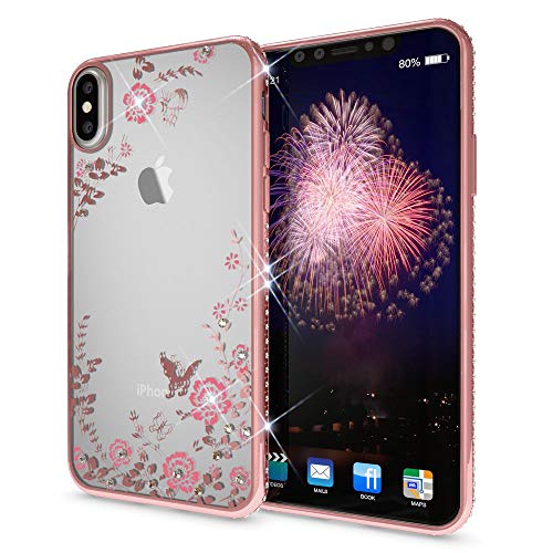 NALIA Brillantini Custodia compatibile con iPhone XS Max, Glitter Copertura Protezione Silicone Sottile Telefono Cellulare, Fiori Cover Case Protettiva Scintillio Bumper, Colore:Pink