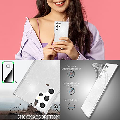 NALIA Chiaro Glitter Cover compatibile con Samsung Galaxy S22 Ultra Custodia, Traslucido Anti-Giallo Copertura Brillantini Sottile Silicone Glitterata Protezione, Case Diamante, Colore:Trasparente