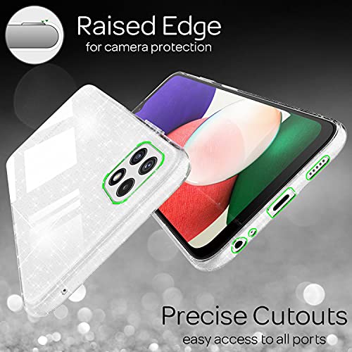 NALIA Chiaro Glitter Cover compatibile con Samsung Galaxy A22 5G Custodia, Traslucido Anti-Giallo Copertura Brillantini Sottile Silicone Glitterata Protezione, Clear Bling Case Diamante - Trasparente