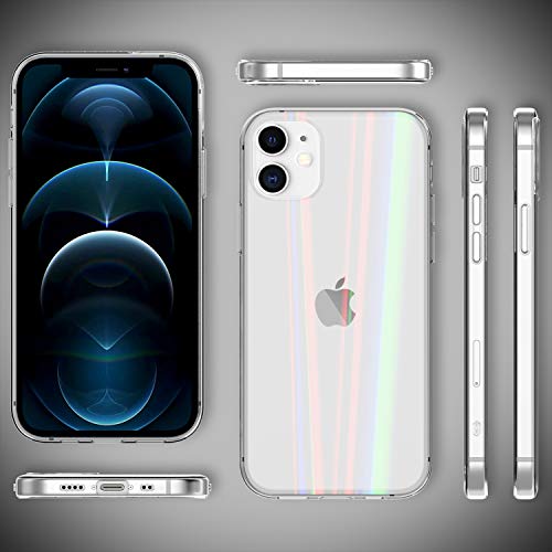 NALIA Chiaro Hardcase Olografico compatibile con iPhone 12 Mini Custodia, Traslucido Arcobaleno Cover Rigida in Vetro Temperato & Silicone Bumper, Clear Case Antigraffio Copertura, Colore:Trasparente