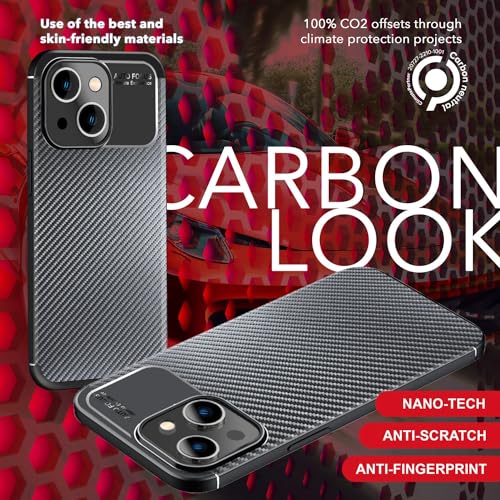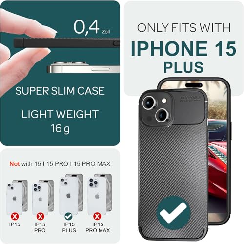NALIA Cover Aspetto Carbonio compatibile con iPhone 15 Plus Custodia, Copertura Silicone Nera Opaca con Struttura in Fibra di Carbonio, Sottile Anti-Impronta Antiscivolo Antigraffio, Case Protettivo