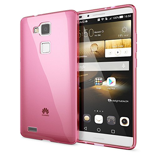 NALIA Cover Custodia per Huawei Ascend Mate 7, Protezione Ultra-Slim Case Resistente Protettiva Cellulare in Silicone Gomma Morbido Bumper Copertura Sottile per Smartphone - Transparente Pink Rosa