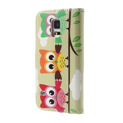NALIA Cover a Libro compatibile con Samsung Galaxy S5 S5 Neo, Flip-Cover Portafoglio Sottile Wallet Case Protettiva Ecopelle Vegan, Protezione Telefono Cellulare Bumper - Owl Threesome Edition
