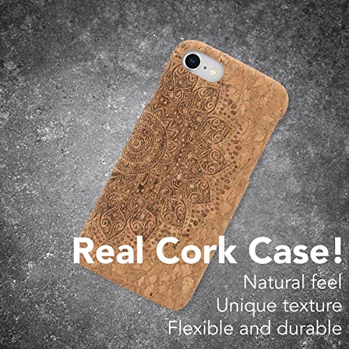 NALIA Cover in Sughero compatibile con iPhone SE 2022 / SE 2020/8 / 7, Cork Hardcase Custodia Rigida Sottile Protettiva, Design Wood Case Copertura Legno Antiurto Bumper, Motiv:Cork Mandala