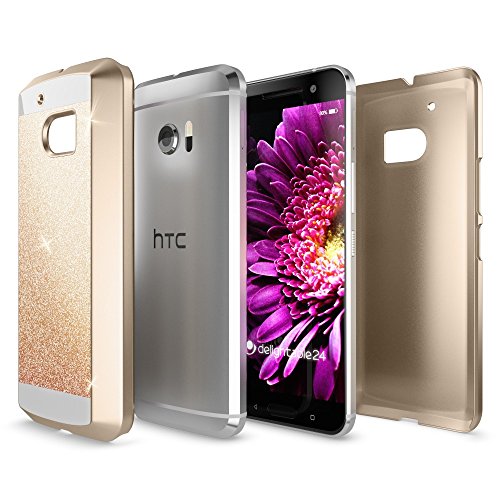 NALIA Custodia compatibile con HTC 10, Glitter Hard-Case Protezione Sottile Smartphone Cover Protettiva Telefono Cellulare, Ultra-Slim Copertura Rigida Bling Bumper Scintillio, Colore:Gold Oro