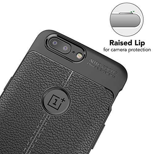 NALIA Custodia compatibile con OnePlus 5, Cover Protezione Aspetto di Cuoio Ultra-Slim Case Protettiva Morbido Cellulare in Silicone Gel, Gomma Bumper Telefono Smartphone Copertura Sottile - Nero
