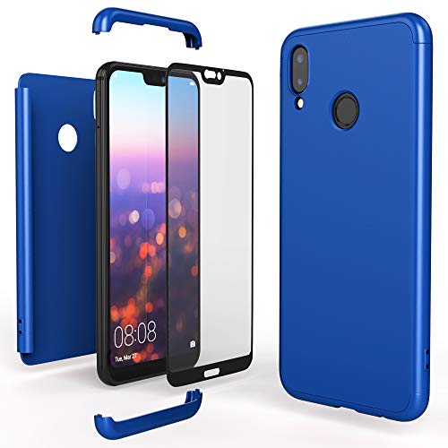 NALIA Custodia Integrale compatibile con Huawei P20 Lite, Cover Protettiva Fronte e Retro & Vetro Temperato, Phone Case Rigida Protezione Telefono Cellulare Bumper Sottile, Colore:Blu