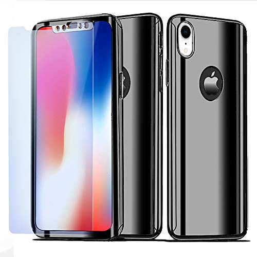 NALIA Custodia Integrale compatibile con iPhone XR, Fronte & Retro Cover Protettiva con Vetro Temperato, Sottile Bumper Slim Hard-Case Etui Telefono Cellulare Protezione Guscio, Colore:Nero