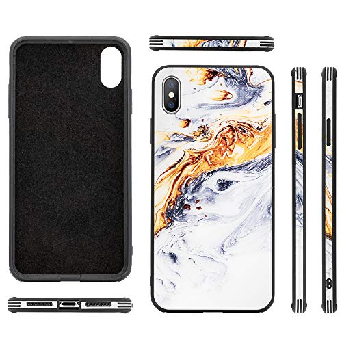 NALIA Custodia Rigida compatibile con iPhone X/XS, Marmo Disegno Cover in 9H Vetro Temperato & Silicone Bumper, Protettiva Hard-Case Resistente Copertura Antiurto Sottile, Colore:Oro Grigio