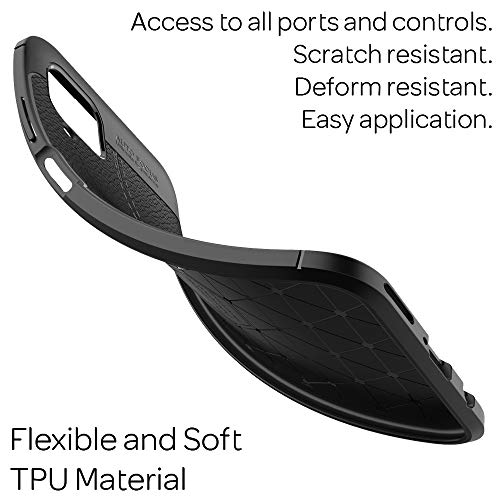 NALIA Design Cover compatibile con Huawei P40 Lite Custodia, Aspetto in Pelle Sottile Silicone Copertura Protettiva, Slim Case Antiurto Bumper Morbido Gomma Cellulare Guscio Skin Pu Cuoio Simil - Nero