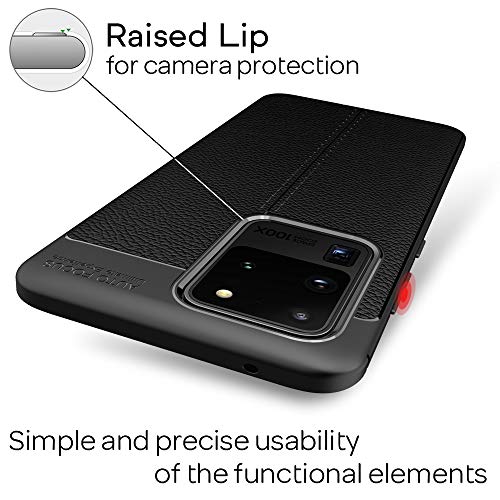 NALIA Design Cover compatibile con Samsung Galaxy S20 Ultra Custodia, Aspetto in Pelle Sottile Silicone Copertura Protettiva, Slim Case Antiurto Bumper Morbido Gomma Cellulare Guscio Skin - Nero