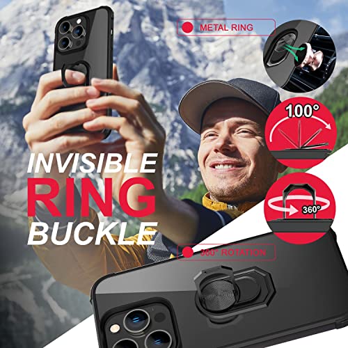 NALIA Ring Cover Chiaro compatibile con iPhone 14 Pro Custodia, Trasparente Anti-Graffio Clear Anti-Giallo, Anello Girevole 360° Rotazione, Funzione Supporto, Dorso Duro & Bordi Silicone, Colore:Nero