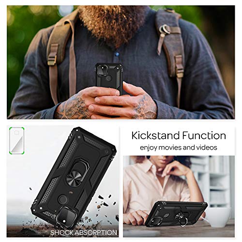 NALIA Ring Cover compatibile con Google Pixel 5 Custodia, Kickstand Copertura Resistente con Anello Girevole 360°, Protettiva Hardcase & Silicone Bumper Sottile Case per Supporto Magnetico Auto - Nero