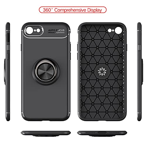 NALIA Ring Cover compatibile con iPhone SE 2022 / SE 2020/8 / 7 Custodia, Silicone Case con Anello Girevole 360-Gradi Rotazione per Supporto Magnetico Auto, Sottile Kickstand Copertura, Colore:Nero