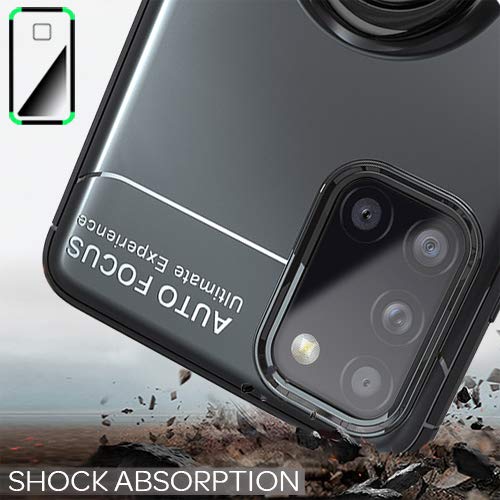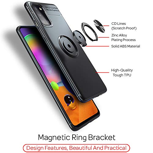 NALIA Ring Cover compatibile con Samsung Galaxy A31 Custodia, Silicone Case con Anello Girevole 360-Gradi Rotazione per Supporto Magnetico Auto, Protettiva Kickstand Copertura, Colore:Nero
