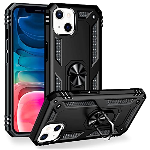 NALIA Ring Cover Resistente compatibile con iPhone 13 Mini Custodia, Antiurto Grado Militare Case con Anello Girevole 360°, Hardcase & TPU Silicone Bumper per Supporto Magnetico Auto, Colore:Nero