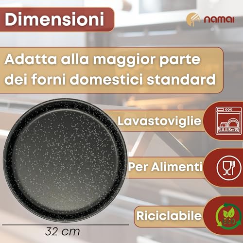 NAMAI Teglia Pizza Rotonda, Teglia Pizza Antiaderente, Materiale in Alluminio, Rivestimento Antiaderente, Design Effetto Pietra, Teglia per Pizza Professionale (SET TEGLIE PIZZA, SET 3 TEGLIE)