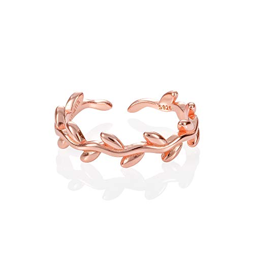 Namana Anello da piede regolabile in argento Sterling 925, da donna, in argento, oro o oro rosa, con motivo a foglia, anello regolabile per dita dei piedi, anelli Midi o Pinky, per donne e ragazze