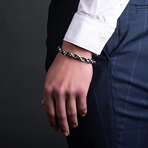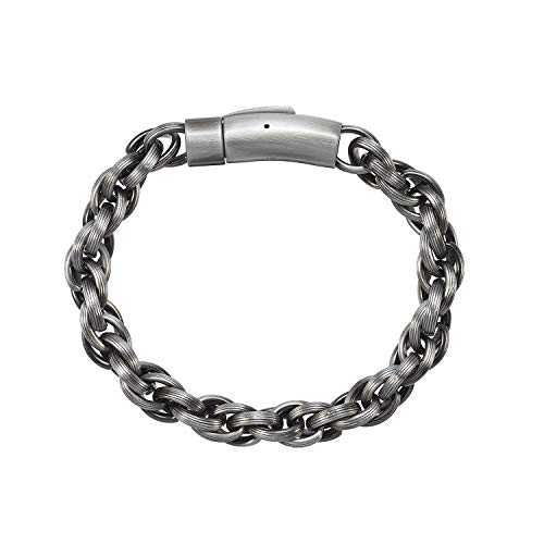 Namana Bracciale a Catena in Acciaio Inossidabile per Uomo. Bracciale a Maglie Intrecciate Color Argento Invecchiato. Disponibile in 2 Dimensioni. Gioielli da Uomo con Confezione Regalo (21.5)