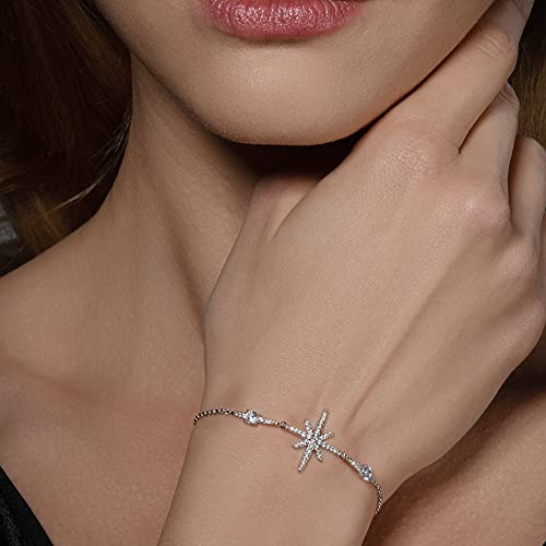 Namana Bracciale Stella Polare con Zirconi Cubici. Bracciale in Oro Rosa Placcato Oro 18 Carati o Color Argento. Braccialetto Regolabile Stella Fortunata