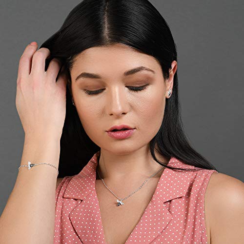 Delicati braccialetti da donna in argento con ciondolo bombato con zirconi e dettagli in smalto nero