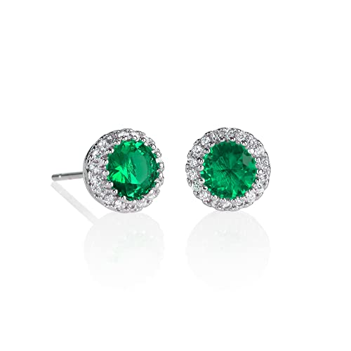 Namana Orecchini Donna Argento con Zirconi Verdi, Piccoli Orecchini a Perno con Pietre Verdi, Orecchini Verde Smeraldo per Donna y Ragazza, Orecchini Halo con Confezione Regalo