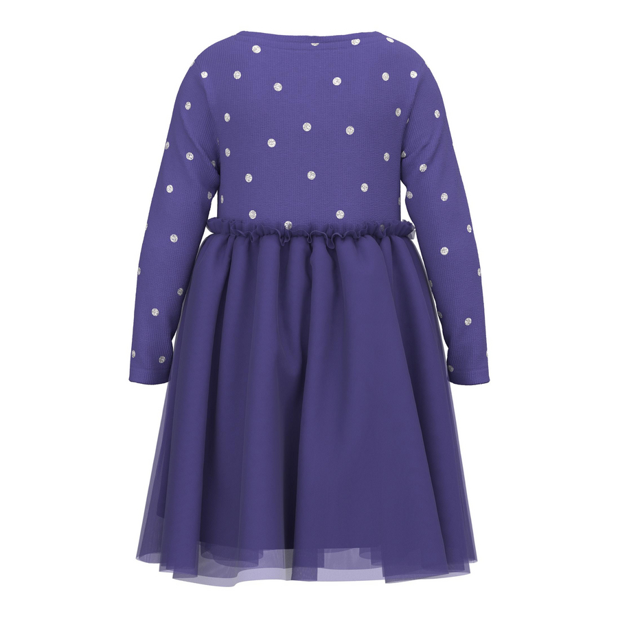 Dettagli del prodotto: Abito camicia festivo Top a coste con glitter Allover print Gonna a 2 strati in tulle e poliestere Arricciatura in vita Materiale e cura: Materiale: 95% cotone, 5% elastan Lavabile fino a 40 °C Non asciugare in asciugatrice Non candeggiare Non lavare a secco Stirare moderatamente a caldo