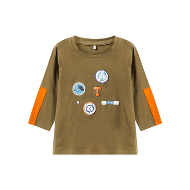 Dalla nuova name it collezione. Bellissima camicia a manica lunga con scollo rotondo e motivo di stampa fresca sul petto. I bottoni a pressione nascosti sulla spalla consentono di indossarlo e toglierlo facilmente. Dettagli del prodotto: Materiale: 95% cotone biologico, 5% spandex Lavabile fino a 40 °C