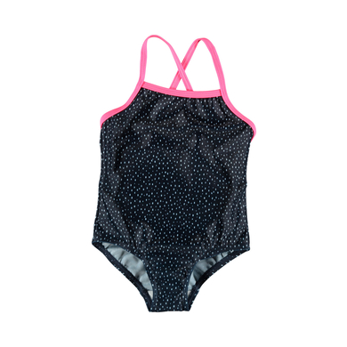 Qualità di marca dalla casa name it . Costume da bagno alla moda con pois - Allover print e spalline incrociate sulla schiena. Il costume da bagno è ideale per le vacanze in spiaggia, le gite al lago o per la piscina per bambini in giardino. Il costume da bagno a due pezzi è fatto di poliestere riciclato e ha una qualità elastica che lo rende comodo da indossare. Dettagli del prodotto: Costume da bagno a fantasia Cinghie incrociate sul retro Qualità elastica Materiale ad asciugatura rapida Materiale e istruzioni per la cura: Materiale: 84% poliestere riciclato, 16% elastan Lavare a mano Non candeggiare Non asciugare in asciugatrice Appendere ad asciugare Non stirare