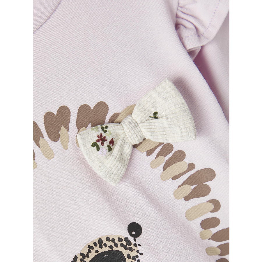 Dettagli prodotto: Camicia a maniche lunghe con grafica print Collo rotondo Dettagli con volant sulle spalle Bottoni a pressione nascosti su una spalla Qualità morbida ed elastica Materiale e cura: Materiale: 95% cotone biologico, 5% elastan Lavabile fino a 40 °C Non asciugare in asciugatrice Non candeggiare Non lavare a secco Stirare moderatamente a caldo