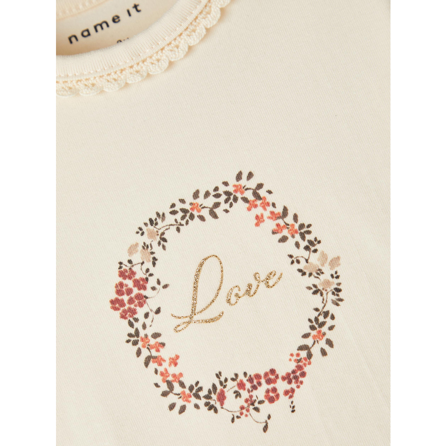 Dettagli del prodotto: Camicia a maniche lunghe con grafica e glitter print Bottoni a pressione nascosti su una spalla Scollo rotondo con bordo in pizzo Materiale e cura: Materiale: 95% cotone biologico, 5% elastan Lavabile fino a 40 °C Non candeggiare Non asciugare in asciugatrice Ferro moderatamente caldo