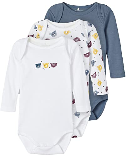 Name It NBMBODY 3P LS China Blue Bear Noos Body, Blu Porcellana, 3 Anni Bimbo