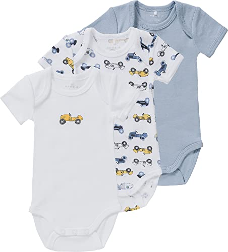 Name It NBMBODY 3P SS Dusty Blue Noos Set di Biancheria per Bambino e Neonato, Blu Polveroso, 12 Mesi Bimbo
