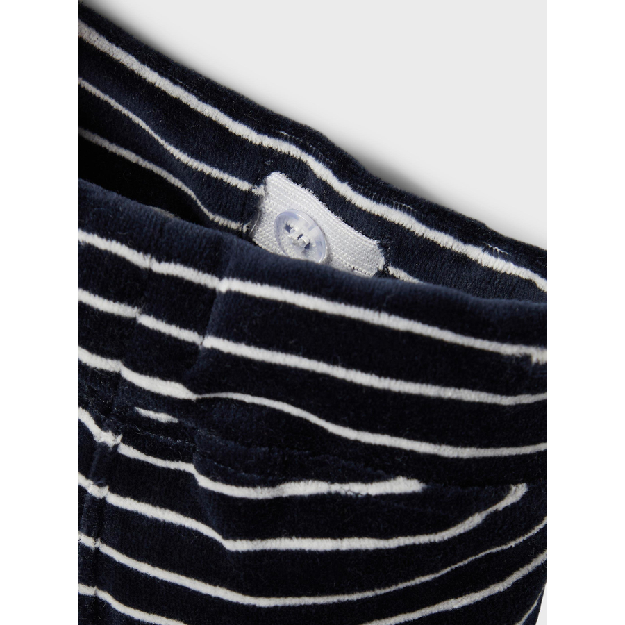 Dettagli del prodotto: Pantaloni da tuta in velluto Strisce design Vita regolabile Bottoni decorativi Polsini morbidi Materiale e cura: Materiale: 80% cotone biologico, 20% poliestere Lavabile fino a 40 °C Non asciugare in asciugatrice Non candeggiare Non lavare a secco Ferro moderatamente caldo