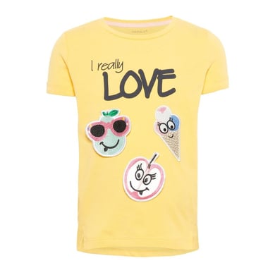 Dalla collezione attuale name it ! Bellissima T-Shirt con scollo rotondo e graziosi dettagli di ricamo e stampa. Con parti adesive removibili e morbido cotone organico. Dettagli del prodotto: Materiale: 95% cotone biologico, 5% spandex Lavabile fino a 40 °C