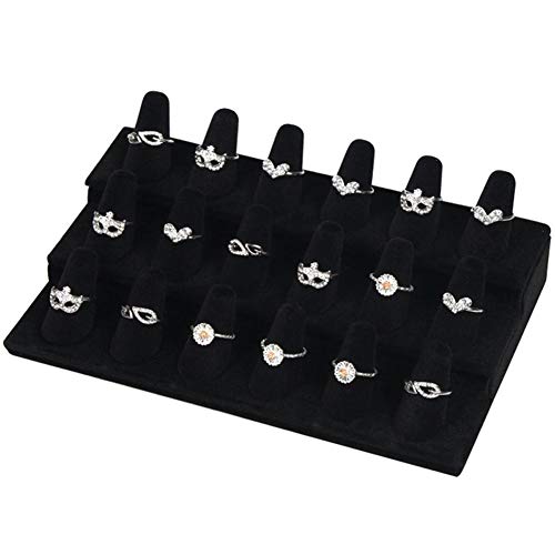 Namgiy Espositore per Anelli, Cono di Barretta in Velluto Porta Gioielli da 18 con Base Robusta, Nero