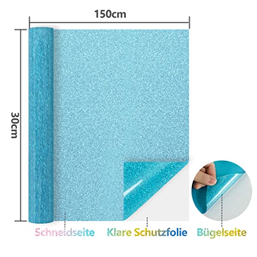 NANAPLUMS Pellicola per plotter con glitter, per trasferimento di calore, in vinile, per tessuti, per t-shirt, tessuti (celeste)