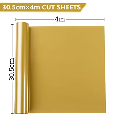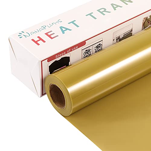 NANAPLUMS Plotter - Pellicola di trasferimento in tessuto, 30,5 cm x 4 m, per Cricut e Silhouette Cameo, da utilizzare in tessuto per trasferimento con ferro da stiro per magliette fai da te (oro)