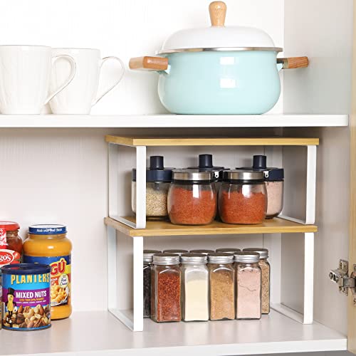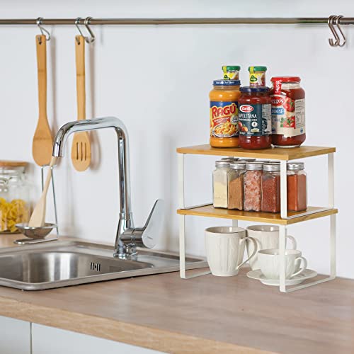 Nandae Set di 2 Organizer Cucina Salvaspazio Scaffale Impilabile Espandibile, Bambù Mensole Porta Piatti impilabili,Piccolo scolapiatti da appoggio per tazzine e utensili